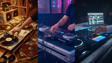 Foca na evolução dos equipamentos, formatos e ferramentas que transformaram a performance de DJ, do vinil às controladoras modernas.