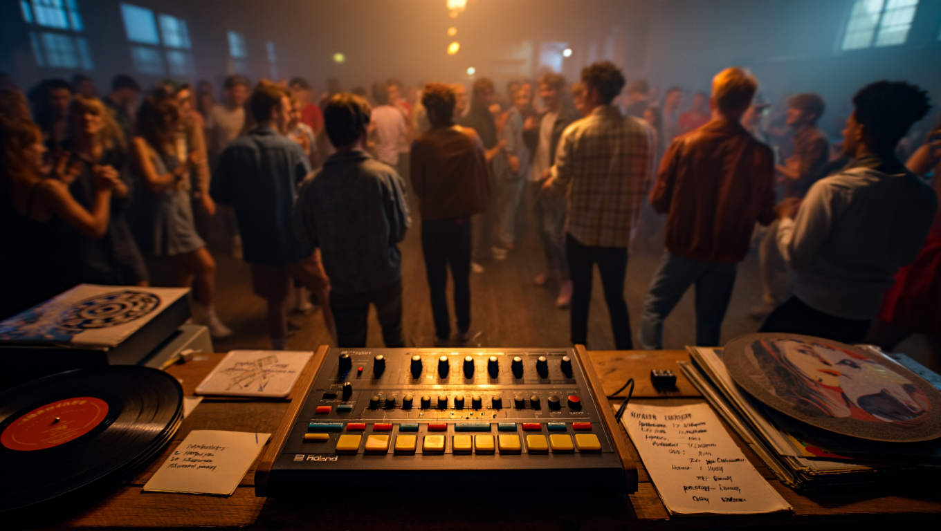 O Roland TR-808 Rhythm Composer, lançado em 1980, foi inicialmente considerado um fracasso comercial. Seus sons de bateria eram “artificiais” demais para os padrões da época – o kick drum profundo, o hi-hat metálico, o clap eletrônico. Mas para os pioneiros do house music, estas características se tornaram virtudes. O TR-808 permitia criar batidas constantes e hipnóticas que podiam ser programadas por horas, perfeitas para manter as pessoas dançando.